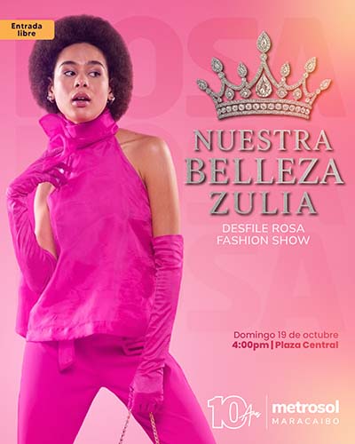 Nuestra belleza Zulia se viste de rosa este domingo 19 de octubre. Te esperamos. Hora: 4:00 pm. Plaza Central